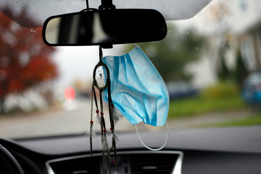If you live in New Jersey or Pennsylvania, for example, doing this might get you in trouble with the law since you’d be prohibited from hanging anything, not just your mask, from that rearview mirror. That’s because any of these objects obstruct your view, creating a safety hazard.